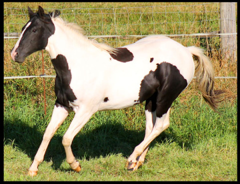 Gina wurde von unserem doppelt homozygoten Black-Tobiano-Hengst