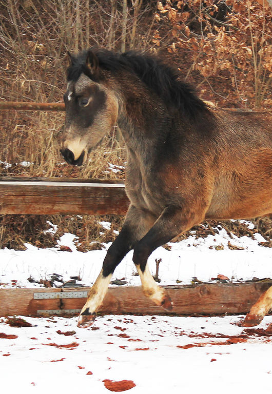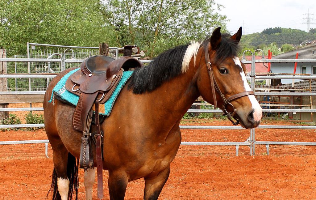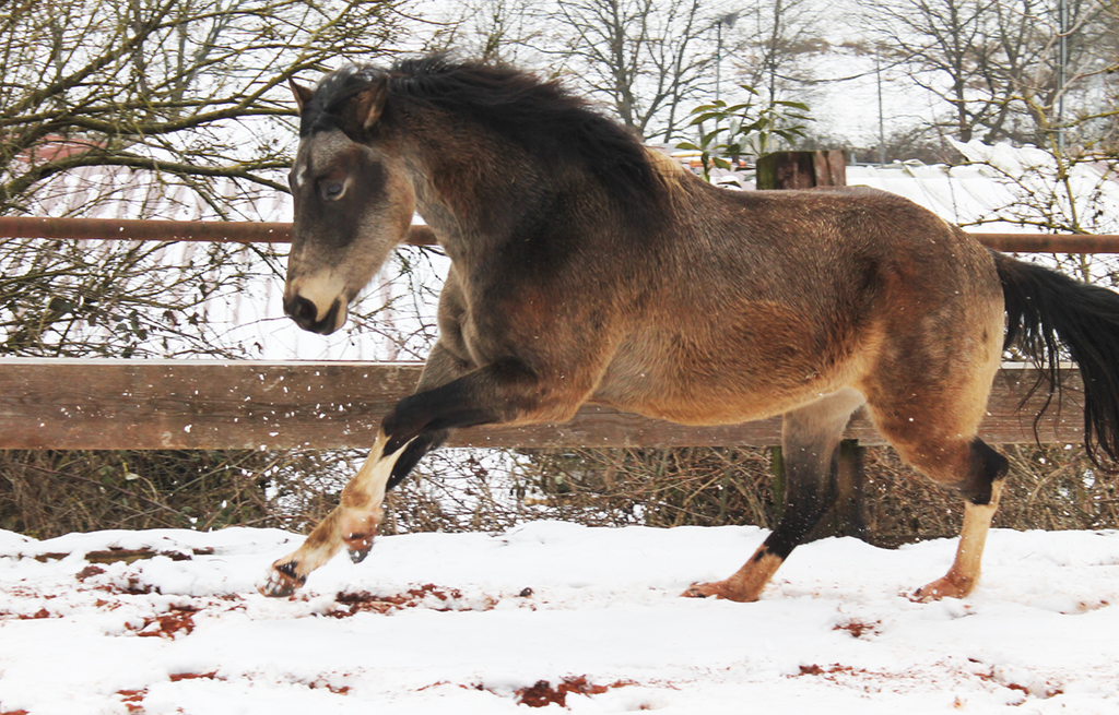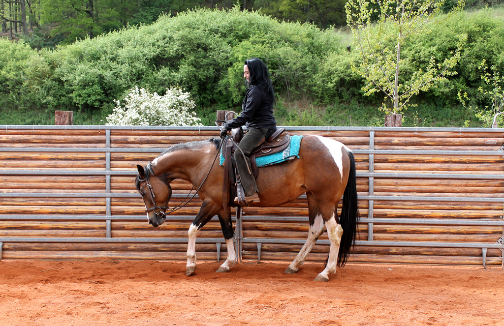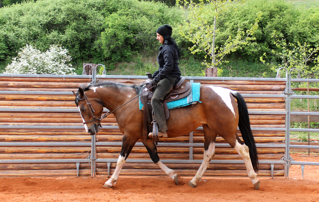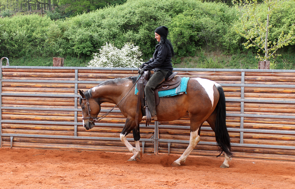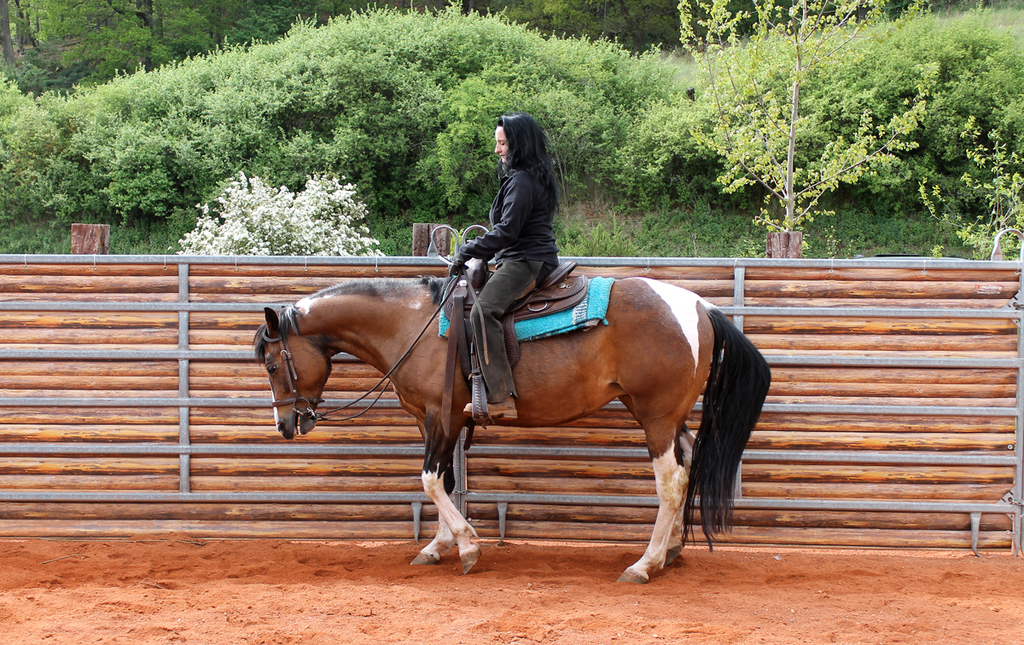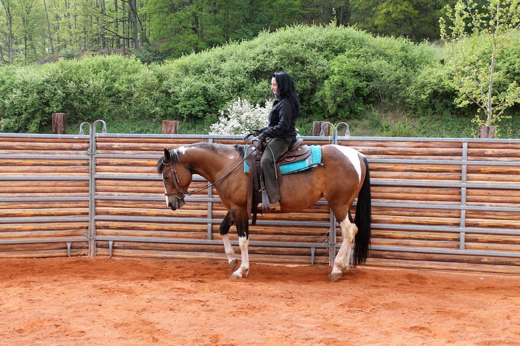 Die Stute ist angeritten, aber noch nicht fertig ausgebildet.