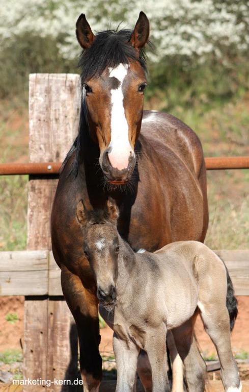 Sie wird mit Garantie auf ein doppelt homozygotes Fohlen und gerne mit einem weiterem Decksprung von einem unserer Hengste verkauft.