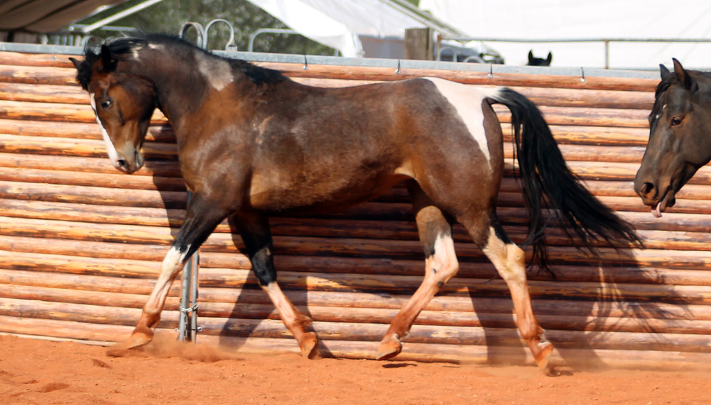 Apaches Tequiera ist zudem eine absolut liebenswerte und anhängliche Jungstute, die über sehr weiche Gänge verfügt und schon jetzt mit ausgewachsenen Stuten der gleichen Rasse in puncto Volumen und Körpergröße mithalten kann, was bedeutet, dass sie einmal eine angenehme Körpergröße für ein Reitpferd erreichen und sehr muskulös sein wird.